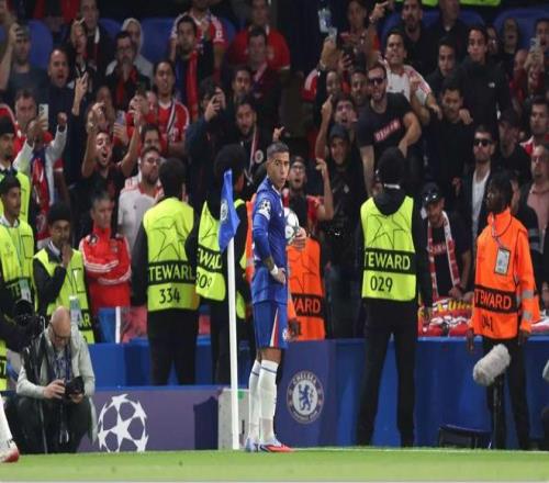 第40分鐘,場上出現(xiàn)爭議一幕。切爾西拿到角球,恩佐走到角旗區(qū),準備主罰。在此過程中,底線附近的本菲卡球迷瘋狂辱罵恩佐,并向后者扔雜物。好在,雜物都沒有砸到恩佐身上。