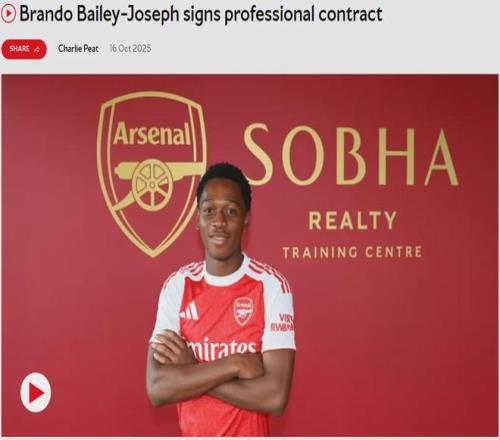 官方:阿森納宣布和布蘭多·拜利-約瑟夫簽下了他的首份職業(yè)合同。